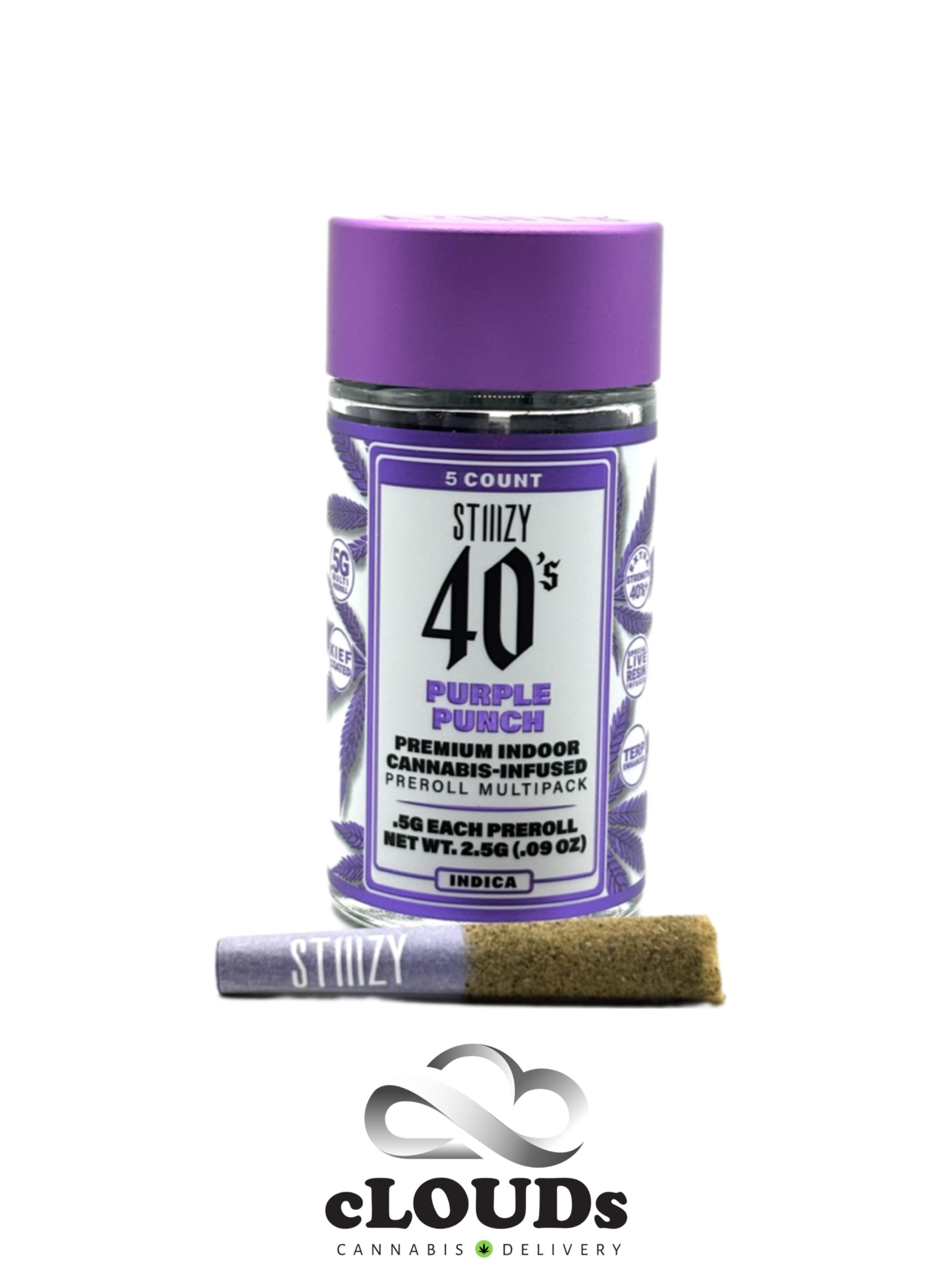Elevate your preroll experience with STIIIZY 40’s infused prerolls. Each one begins with 0.5 grams of our premium cannabis flower, infused with expertly crafted live resin and finished in a kief-coated cone. Named for their impressive total cannabinoid content, STIIIZY 40’s deliver a bold profile and refined formulation that stands out. Designed for those who appreciate attention to detail, these prerolls set a new benchmark in infused cannabis craftsmanship.
